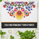 Esta toalla de cocina presenta un diseño vibrante e intrincado, inspirado en el arte folclórico polaco. La obra es simétrica y exhibe una variedad de flores y hojas de colores, dispuestas en un patrón folclórico tradicional. El fondo es de color rojo intenso, por lo que los colores vivos de las flores destacan con gusto. En la parte inferior de la toalla, hay un área de texto de personalizable que actualmente dice "FOLK-ING FABULOUS PIEROGI MAKER". Wycinanki, el arte tradicional polaco de corte de papel, a menudo presenta diseños simétricos y florales similares. El diseño de esta toalla refleja la naturaleza intrincada y colorida del wycinanki, lo que la convierte en una bella y culturalmente rica adición a cualquier cocina.