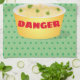 ¡Cuidado con los fideos! Dibujado en un divertido estilo personalizado en un fondo verde de polka dot.