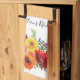 Personaliza esta hermosa toalla de cocina de acuarela con tu nombre o cualquier texto. Los colores de las flores son púrpura, rosa, rojo, amarillo y naranja.