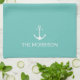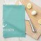 Personalizado Náutico Nombre del barco luz de ancla blanca toalla de cocina verde azulada. Personalizar de texto náutico de navegación, nombre del capitán. Nombre del barco, tienda, nombre comercial. Diseño minimalista, sencillo y elegante, ideal para marineros, barcas, vela y paseos en bote.
