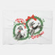Toalla de cocina de encargo del navidad de la guirnalda retra adorable de los caniches. ¡Dos caniches grises/negros adorables! Cada caniche está llevando un cuello rojo con una campana en ella, y se enmarca para arriba con un acebo del bonito que el navidad diseño del texto enrruella y que de las Felices Navidad. Añada el texto de encargo en cualquier área blanca si está deseado, usando su opción del texto (tipo incluyendo, tamaño, color, colocación). Completamente adaptable.
