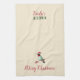 Toalla de cocina personalizado con un colibrí con un sombrero de Santa. El estilo del tipo de letra, el tamaño del tipo de letra y el color se pueden cambiar haciendo clic en "personalizar más adelante".