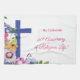 Celebrar alegremente con una monja en su sexagésimo aniversario de la vida religiosa. flores de bonito y el fondo y el lado izquierdo de este regalo, recuerdo, regalo y fiesta esencial alrededor de la cruz azul. El mensaje está lleno de alegría y acción de gracias.