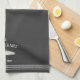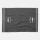 Personalizar tu cocina con esta linda toalla personalizada que incluye tu nombre familiar o el nombre de tu casa y el año establecido con letras de marfil suave acentuadas con un ilustracion de pescado sobre un fondo gris de carbón.