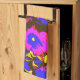 Un vibrante diseño de arte pop azul, púrpura, rojo, amarillo y negro de petunias.