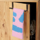This kitchen towel features a soft pink base accented with expressive blue brushstrokes, creating a lively hand‑painted aesthetic full of movement and charm.
