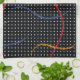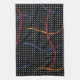 El estilo retro de los años 1980, la pintura de color primario traza un patrón de salpicadura en un fondo geométrico con puntos en blanco y negro.