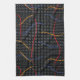 El retro de los años 1980, la pintura de color primario traza un patrón de salpicadura en un fondo geométrico con puntos en blanco y negro.