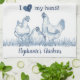 Paño De Cocina Pollo Rústico Azul y Blanco, Hen Personalizado