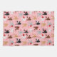 Cute Valentine's Day Poodles with in black, white, gray, apricot and brown color coats wearing red, pink, and white polka dot and heart sweaters with scattered paw prints and arrow on a pink background.