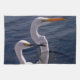 Esta toalla de cocina muestra una fotografía original de ZoeSPEAK de dos aves blancas de cuello largo posando junto a las profundas aguas azules del Golfo de México. El pájaro con el largo y puntiagudo pico negro es una garganta nevada. El pájaro con el largo y puntiagudo pico naranja amarillo es una gran garganta.