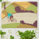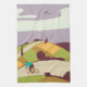 Poster de ciclismo de época con un ciclista de estilo retro que monta su bicicleta en un paisaje inglés de estilo retro.