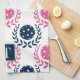 Paño De Cocina Preppy Pickleball Laurel Wreath - Navy & Hot Pink