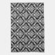 Diseño de la superficie del damasco de estilo barroco, con detalles blancos sobre un fondo negro.
