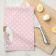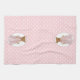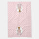 16" x 24" la toalla 100% de cocina del algodón de la tela cruzada con una imagen, en ambos extremos, de Priscilla, un oso de peluche mimoso marrón se vistió en un rosa hermoso y el oro rizó el vestido, en un óvalo blanco con una frontera rosada en un fondo de los lunares blancos en rosa. Personalizar para un gran regalo de la fiesta de bienvenida al bebé. Vea la servilleta a juego del paño, la servilleta de papel del cóctel, el placemat del paño, el placemat de papel y los prácticos de costa. Vea la colección de la esquina de la toalla de la cocina de los niños enteros en la sección de los linos de FOOD/BEV el |.