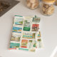 This tea towel features a repeating pattern of hand-painted, vintage-style matchbooks inspired by Puerto Vallarta’s neighborhoods, beaches, and everyday local favorites. Each illustrated matchbox captures a small moment of life in the city, from iconic spots like Zona Romántica, Conchas Chinas, and Playa Los Muertos to café culture, beach clubs, and colorful street food stands.