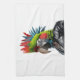 Divertido Punk Rocker Parrot con peinado mohicano vestido con una chaqueta de cuero.