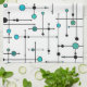 Un gráfico geométrico del estilo moderno de los mediados de siglo en sombras de la aguamarina y del azul.