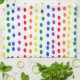 Arte digital divertido compuesto por filas de puntos en colores arcoiris.