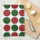 Paño De Cocina Puntos de Polka Rojo y Verde sobre Blanco
