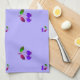 Cereza morada sobre fondo de lavanda ligera al estilo de arte pop.