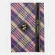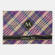 Diseño morado, amarillo dorado y azul tartán. Patrón sin foco. texto personalizado y monograma.