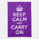 El color púrpura (660099) da un toque moderno al diseño clásico "Keep Calm and Carry On".