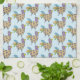 Patrón de doodle de repetición colorido de una gallina sobre fondo azul claro.