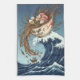 This bold illustration blends traditional Japanese wave aesthetics with modern food pop art. A fierce, animated ramen bowl bursts through a crashing ocean wave, flinging noodles like wild hair while toppings explode outward in dramatic motion. The eggs, meat, and garnishes become expressive elements, giving the ramen a mythical, almost warrior-like personality.