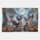 Desata el espíritu espeluznante con este diseño espeluznante de Halloween que presenta una manada de perros bajo un cielo oscuro iluminado por la luna, rodeado de murciélagos voladores y calabazas brillantes. ¡Perfecto para aquellos que aman un toque de diversión espantosa con sus amigos peludos!