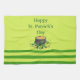 Una toalla de cocina adecuada para el Día de San Patricio, este artículo presenta un fondo verde limo con "Feliz Día de San Patricio" escrito con letra verde. Hay una olla de oro debajo con rayas verdes en el fondo. ¡Elige la tuya! Clipart y Stripes creados por: AMBilustrations http://www.etsy.com/shop/AMBillustrations/