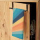Ilustracion de patrón geométrico de rayos solares de estilo retro con decoración de rayas amarillas, naranjas, azules y turquesas