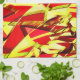Paño De Cocina Razas amarillas sobre la imagen roja, con llovizna