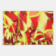 Diseño de bandas amarillentas con algunos tonos oscuros o verdes sobre un fondo rojo y un efecto que simula la lluvia fina.