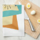 Esta toalla de cocina moderna y divertida de mediados de siglo presenta formas rectangulares de formas chilladas y estiradas. En azul turquesa, crema y naranja. Los acentos de Starburst en rosa, azul, oro y negro resaltan el diseño. Decoración de cocina a la vista.