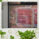 El arte abstracto de esta toalla de cocina de ZoeSPEAK es una fotografía original de un reflejo de la ventana de una tienda. La ventana negra y los marcos de la puerta, junto con el tronco de una palmera, le dan a la foto un aspecto moderno. Los tonos más neutros se ven interrumpidos por un color rosa salmón en un marco de ventana blanca. También hay unas letras de oro sobre el rosa.