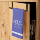 Toalla de cocina azul y blanca elegante con monograma de regalo de inauguración de casa y nombre de familia. Diseño de monograma blanco personalizado con el apellido de la familia del novio y la fecha de establecimiento impresa en letras de color crema claro sobre un hermoso fondo azul. Un regalo único para recién casados. Precioso para su nueva vida juntos, hace un hermoso regalo de inauguración de casa o regalo de fiesta de compromiso. Haga clic en Personalizar esta plantilla para personalizarla con la inicial del apellido del monograma, el nombre de la familia y la fecha de establecimiento de manera rápida y sencilla. Disponible con un delantal y una manopla a juego, todos están disponibles en la Colección de regalos para recién casados y bodas de esta tienda, que ofrece una amplia gama de artículos de regalo personalizados únicos y imprescindibles para regalos para recién casados y regalos de inauguración de casa. Envío rápido a todo el mundo.
