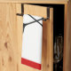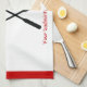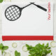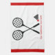 Regalos de bádminton, racquet y toalla de cocina con un minimalista ícono negro de dos racquets de bádminton, un transbordador y un borde rojo alrededor.