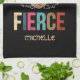 Esta toalla de cocina muestra a una hermosa mujer negra con el texto "Fierce". Es perfecto para una mujer afroamericana el 10 de junio y cualquier otra ocasión.