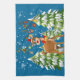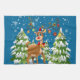 Rindeo en la nieve con árboles y adornos colgados de sus cuernos