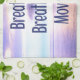 Respira, Respira, Sigue, Motivadora y Inspiradora con el hermoso océano en el fondo y el cielo azul y las nubes moradas.