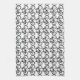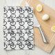 Esta toalla de cocina presenta un diseño contemporáneo de un patrón abstracto de repetición de bicicletas negras sobre un fondo blanco.