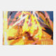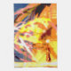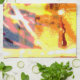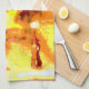 El trabajo de arte abstracto de esta toalla de cocina fue creado a partir de una fotografía de cierre original de HomeWare de gotas de lluvia en una planta de palmeras de coral. El diseño fotográfico está en colores tropicales soleados, amarillo intenso, rosa, naranja, terracota, azul y blanco.
