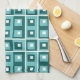 Paño De Cocina Retro Blue Geometric Squares Pattern