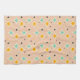 Retro geometric pattern with teal, orange, and black star-shaped diamonds on a peach background. The design conveys a playful, vintage feel.