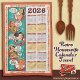 Retro Housewife Calendar Towel 2026 will keep you in snappy retorts all year long. Retro women with wise sayings that you may have heard before (thanks Mom!) with vintage kitchen icons decorating the border of this great kitchen towel. Display in your kitchen on a dowel, or just hang over the handle of the oven door.