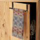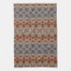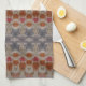 Toalla de té de cocina de diseño en un patrón Watercolor de azul, rojos oxidados y gris.