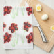 Flores en rojos y un toque de carbón negro. Toalla de mano de diseño floral fresca y divertida para su cocina o baño.