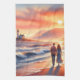 A dreamy coastal scene unfolds at golden hour, where a couple strolls along the shoreline beneath a glowing sunset and a distant lighthouse. Soft pastel skies blend coral, peach, and warm amber tones with rolling ocean waves, creating a tranquil, romantic atmosphere. The painterly style feels whimsical and cozy, evoking cottagecore and coastal folk aesthetics with a gentle sense of wander and togetherness. AI generated artwork.