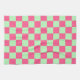 Resumen de arte digital de cuadrados rosa caliente y verde suave en una formación a cuadros.